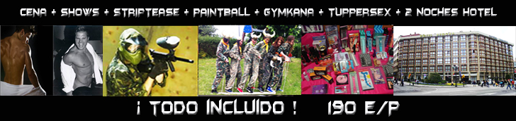 Cena + Shows + Striptease + Paintball + Gymkana + TupperSex + Hotel 190 Euros/p